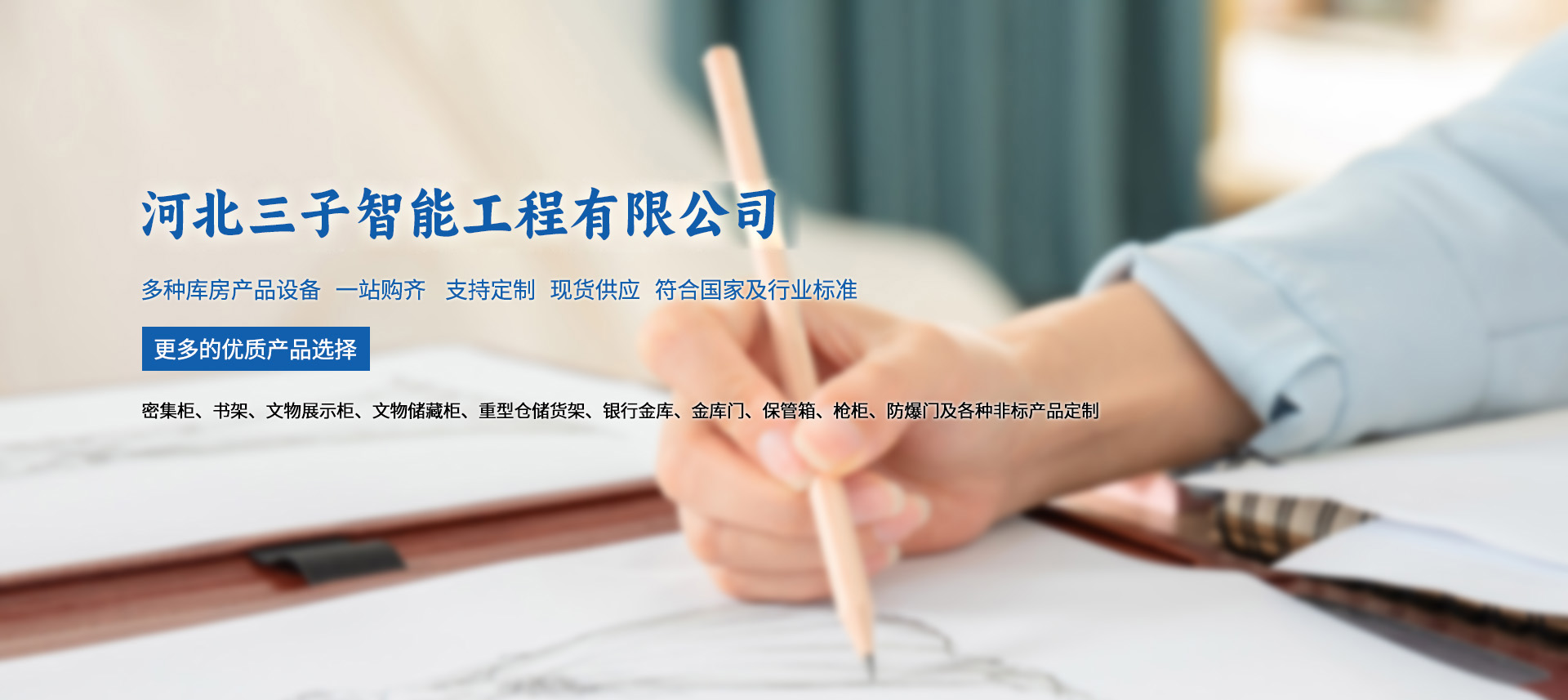 河北三子智能工程有限公司主營(yíng)密集柜、書(shū)架、文物展示柜、文物儲(chǔ)藏柜、重型倉(cāng)儲(chǔ)貨架、銀行金庫(kù)、金庫(kù)門(mén)、保管箱、槍柜、防爆門(mén)及各種非標(biāo)產(chǎn)品定制。我們集研發(fā),設(shè)計(jì),生產(chǎn),銷(xiāo)售和服務(wù)于一體,擁有國(guó)內(nèi)先進(jìn)的設(shè)備和專(zhuān)業(yè)的制作團(tuán)隊(duì),我們秉承踏實(shí),創(chuàng)新,責(zé)任的企業(yè)精神服務(wù)于檔案存儲(chǔ),倉(cāng)儲(chǔ)物流,農(nóng)業(yè)部,博物館,美術(shù)館,銀行,部隊(duì),學(xué)校等多個(gè)領(lǐng)域,我們始終堅(jiān)持用戶(hù)至上和精益求精為客戶(hù)提供優(yōu)質(zhì)的產(chǎn)品及服務(wù)。
